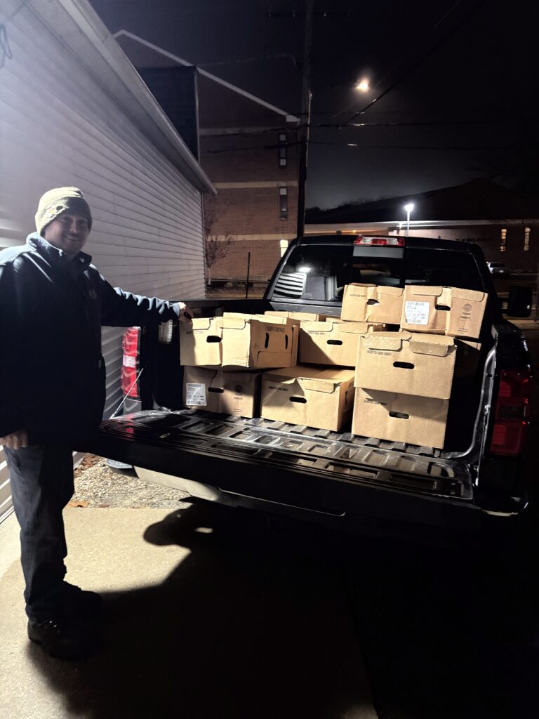 A local business, Sterling Steel, donated 40 turkeys to the St. Vincent de Paul food pantry on November 20th.  Thanks to Ashley, Jason and Greg for their help in loading the turkeys, with a special thank you to Greg for his help unloading and stocking the turkeys at the pantry.  Sterling Steel is a generous supporter of St. Vincent de Paul and we appreciate their generosity in past years and for making Thanksgiving special for families this holiday season through their generosity.  God bless you!
